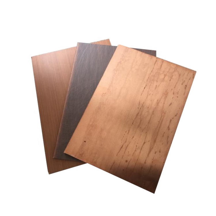 众邦紫铜/黄铜复合板使用紫铜/黄铜做面板,铝作为底板,中间芯材为高压低密 度聚乙烯或防火料。相比于紫铜板/黄铜板,紫铜/黄铜复合板更节约成本。复合 板表面可以做拉丝,铜绿,古铜色以及其它特殊处理。